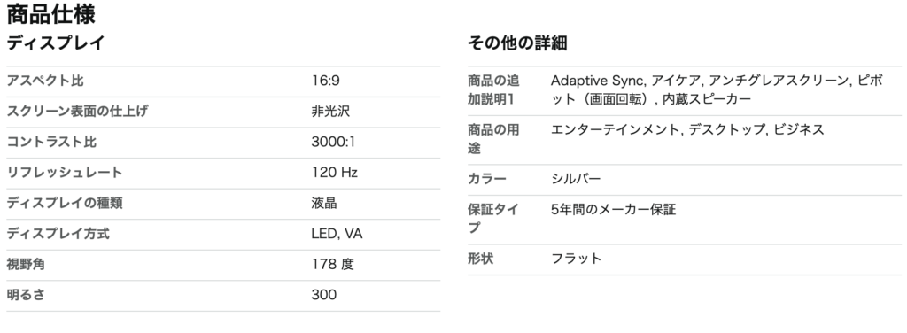 今回購入したモニターは、下記のモニターでAmazonブラックフライデー開催時に購入しました。購入価格は、10%引きで49,980円でした。USB-C端子がない点を除けば、非常に満足しております。唯一残念だったのは、前の27インチモニターに付いていたイヤホン端子がなくなっていた点です。